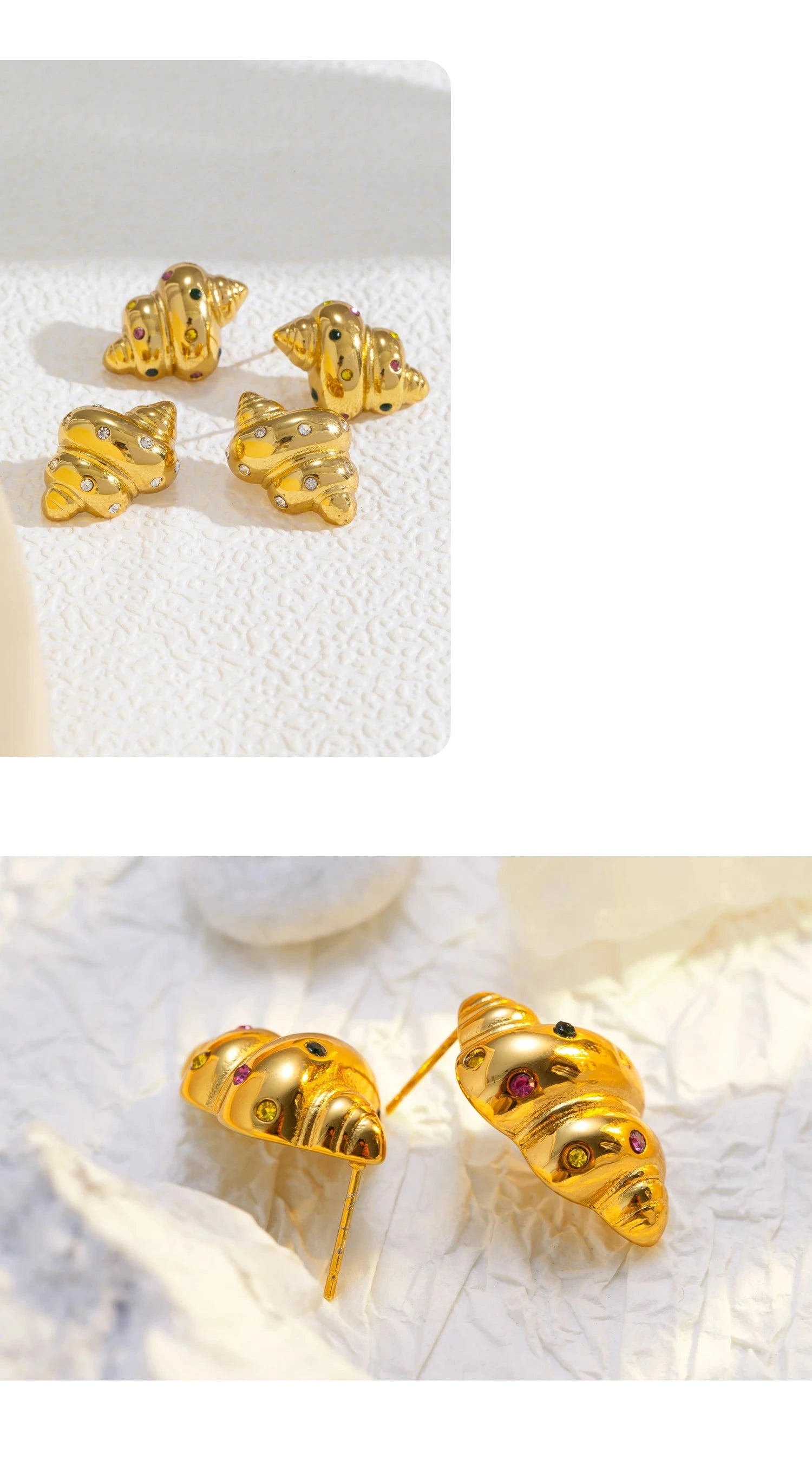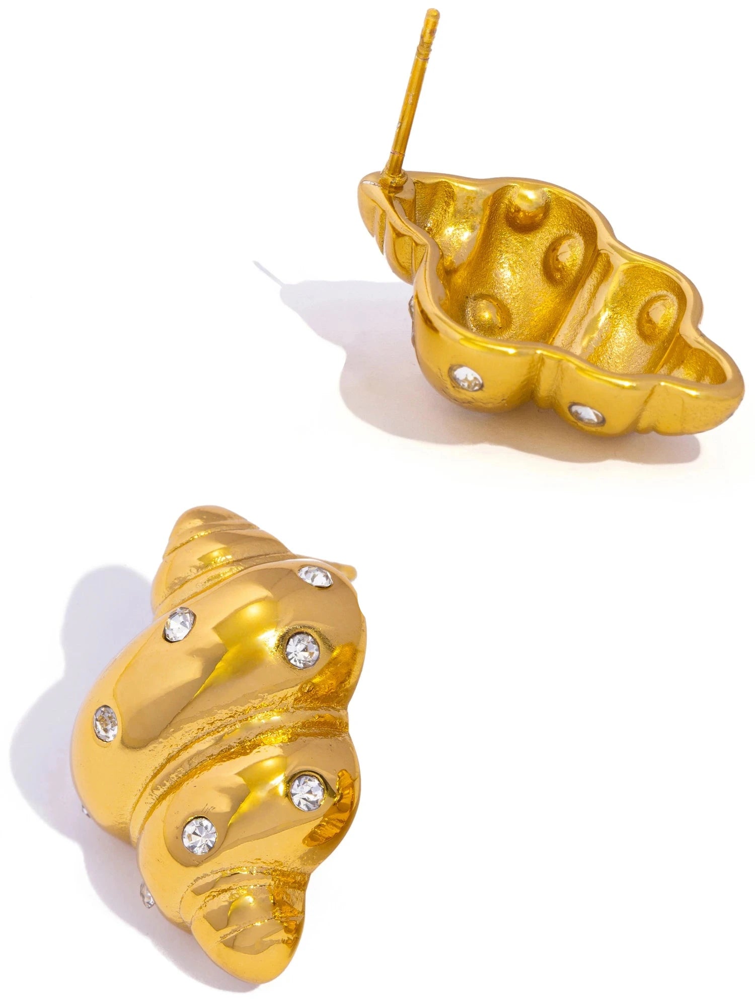 Die „Rhinestone Conch Earrings“ fangen die Magie des Meeres ein: zarte Muschelformen, veredelt mit funkelnden Zirkonia-Steinen. Sie vereinen sommerliche Strand-Vibes mit luxuriösem Glanz – ein Statement-Piece für Frauen, die den Ozean lieben und Eleganz schätzen.