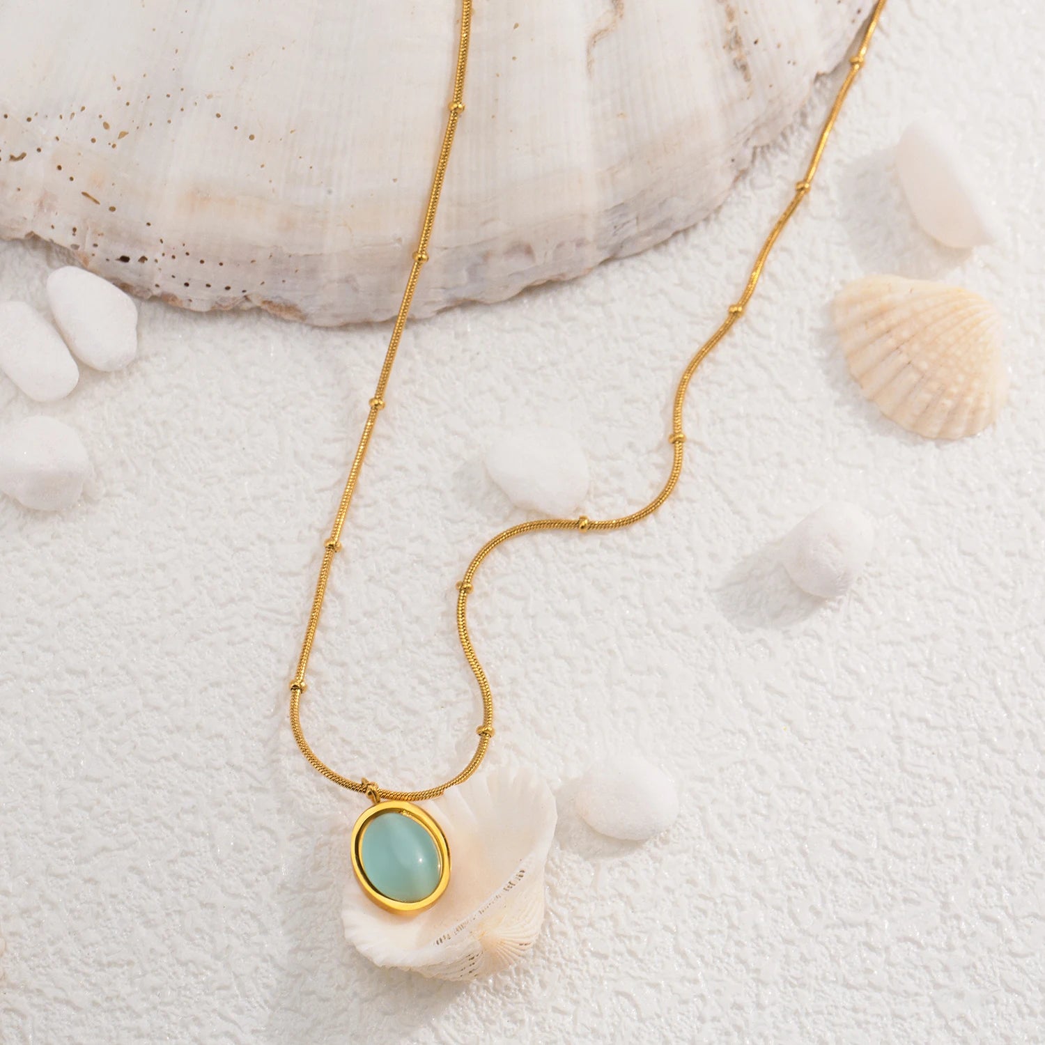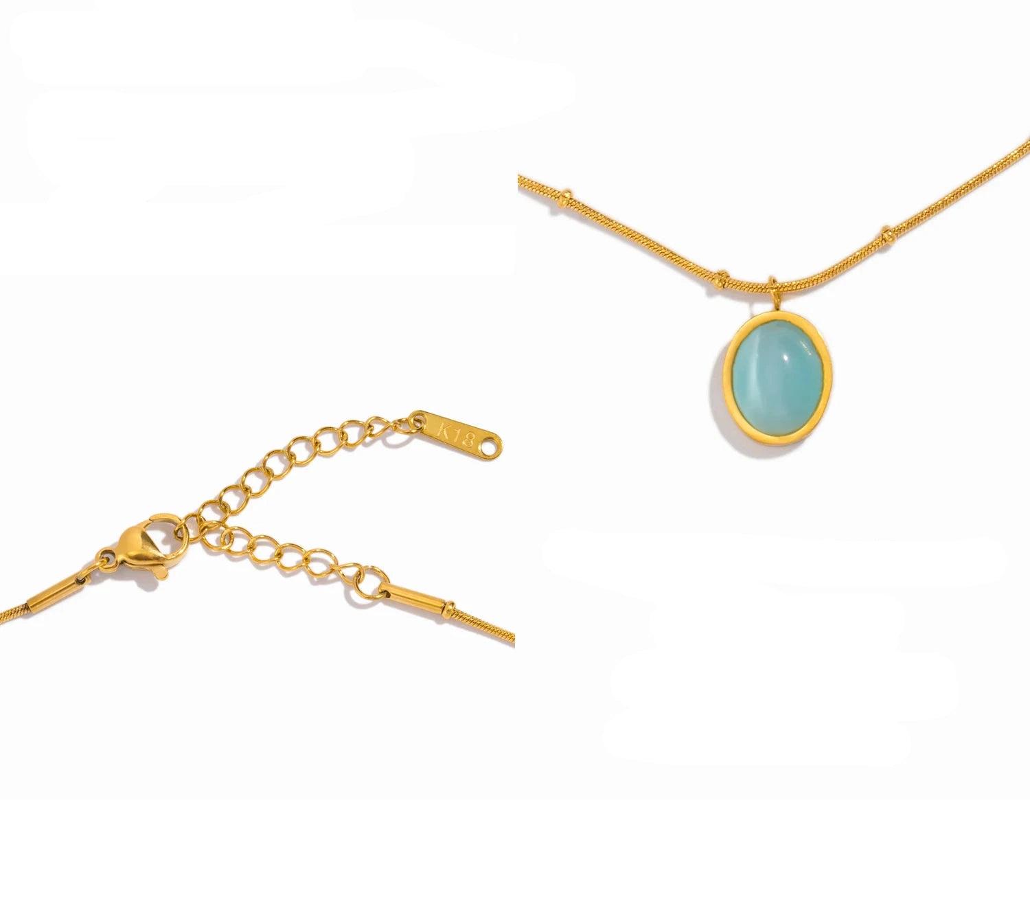 Gefertigt aus hochwertigem Edelstahl mit 18K Echtvergoldung und veredelt mit einem kunstvoll geschliffenen Saphir-Stein, bleibt diese Kette hypoallergen, wasserfest und farbbeständig.