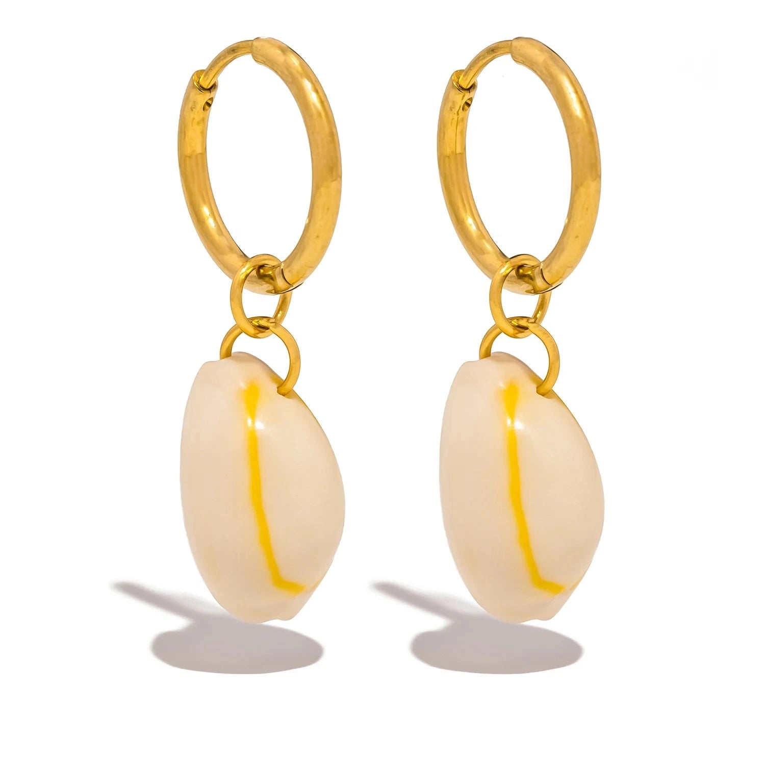 Ein Hauch von Meer für dein Outfit – die „Conch Drop Earrings“ kombinieren schlichte Creolen mit einem natürlichen Muschel-Anhänger. Leicht, verspielt und voller Strand-Vibes, sind sie das ideale Sommer-Piece für Frauen, die Freiheit und Ozean-Feeling lieben.