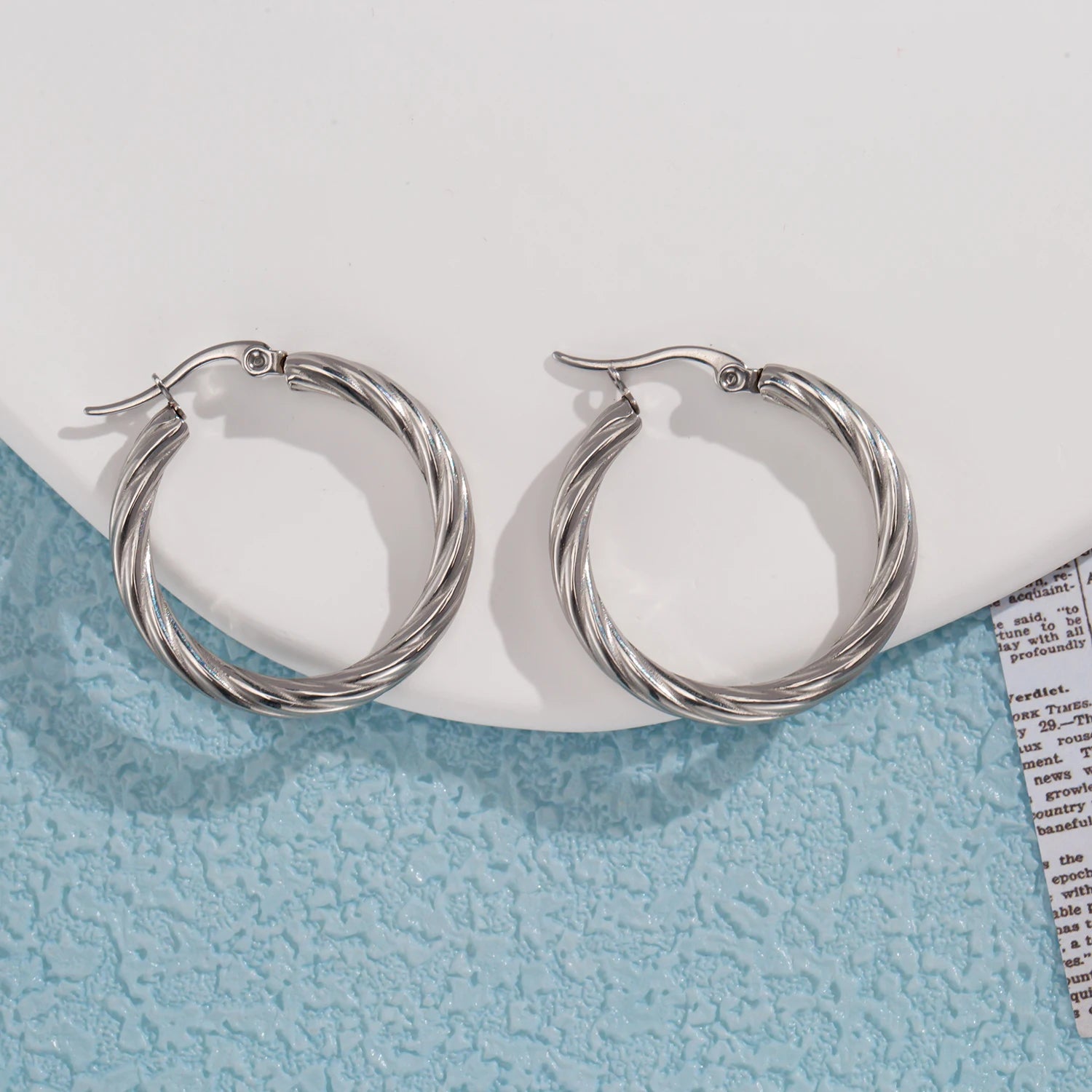 Ein Klassiker mit einem modernen Detail – die „Bold Twist Hoops“ vereinen minimalistisches Design mit einer feinen Drehung, die dem Look Dynamik und Eleganz verleiht. Mit 30 mm Durchmesser sind sie etwas größer und setzen so ein klares Statement, ohne aufdringlich zu wirken.