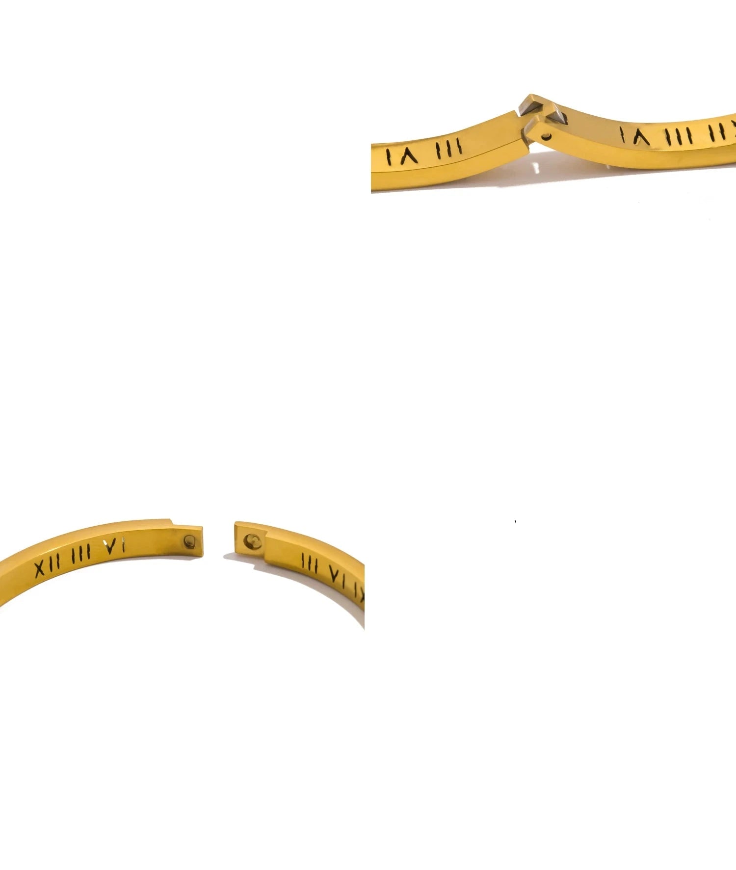 Zeitlosigkeit trifft auf Moderne – der „Roma Elegance Bangle“ ist inspiriert von klassischem Design und verleiht jedem Look eine subtile Raffinesse. Die feinen römischen Ziffern, kombiniert mit funkelnden Zirkonia-Steinen, symbolisieren Eleganz, Beständigkeit und Stilbewusstsein.