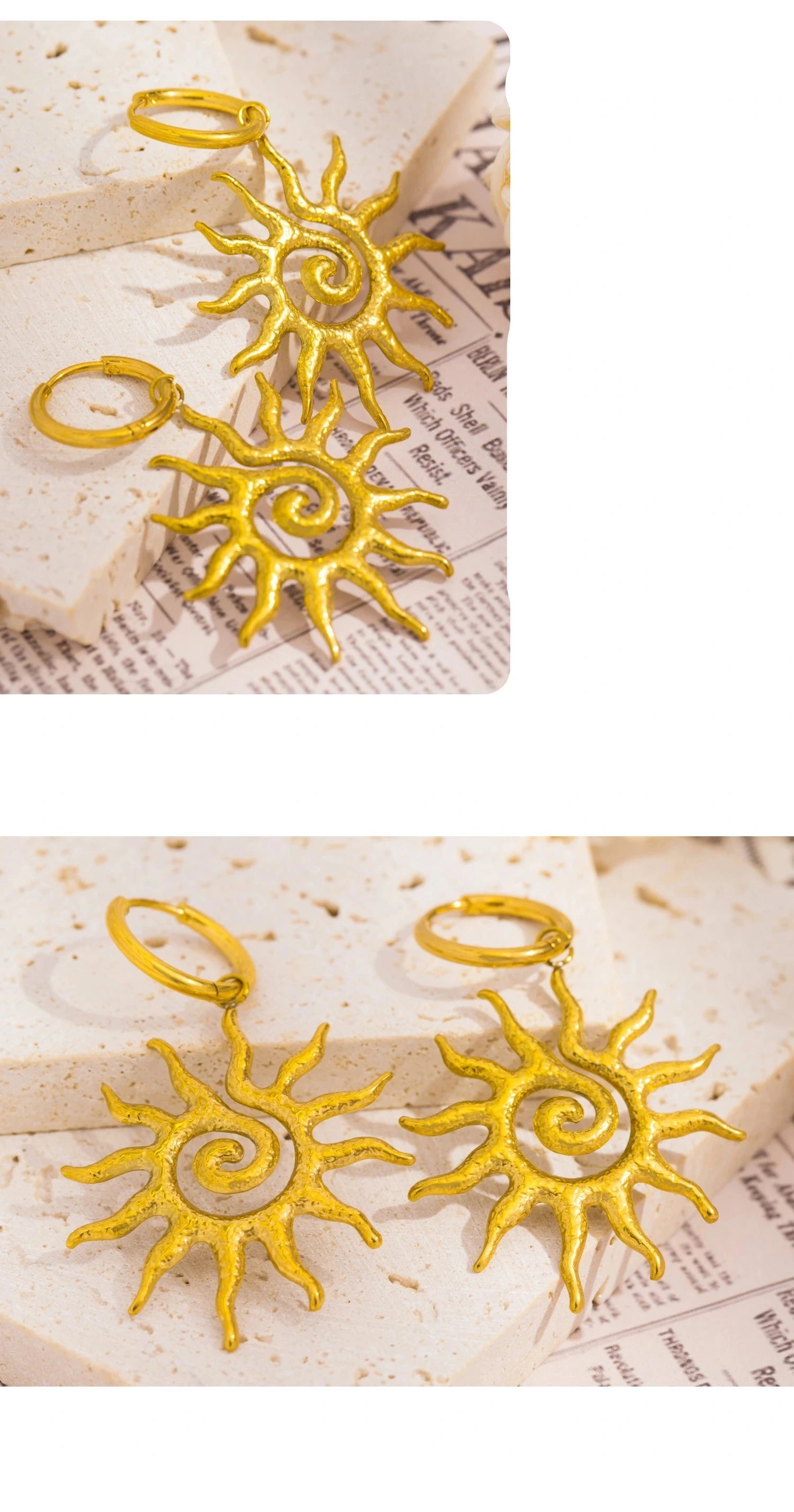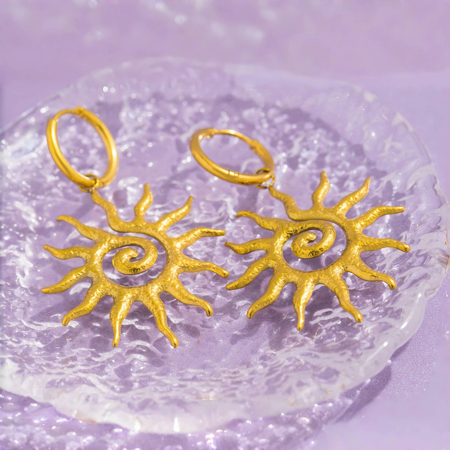 Die Solar Drop Hoops bringen die Strahlkraft der Sonne in dein Daily Look. Mit ihrem geometrischen Design und dem goldenen Schimmer sind sie ein starkes Symbol für Energie, Wärme und Selbstbewusstsein – inspiriert von endlosen Sommertagen.